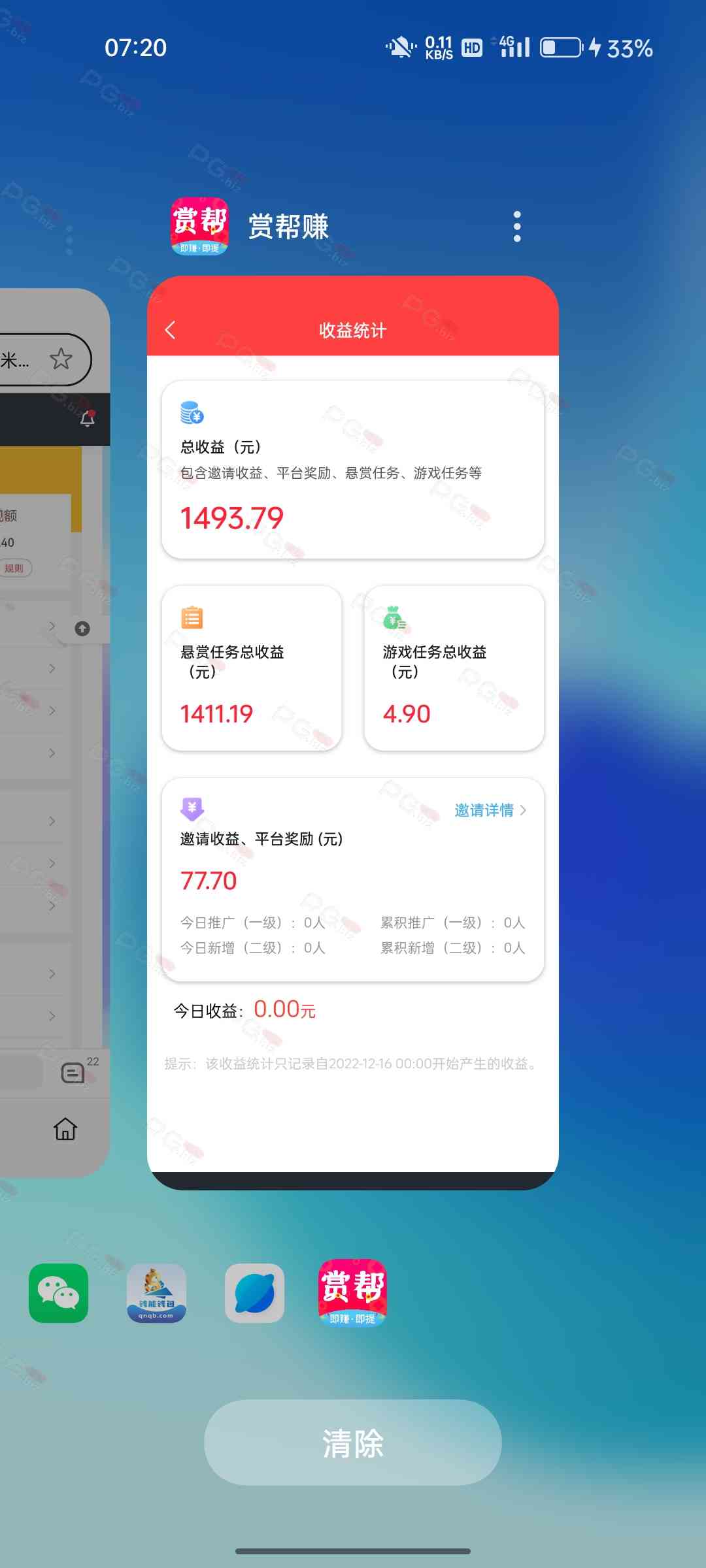 做任务做得我都累,有时无聊偶尔做下,一天花5-6小时就得30左右,就开始新的时候没做什么任务的时候,一天8-9个小时100-200,现在就看视频广告一个小时就5-7块